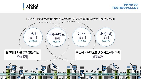 판교테크노밸리 입주기업의 약 93%는 첨단업종이며, 85.94%가 중소기업이라는 통계가 나왔다. 이들의 지난해 매출액은 약 107조2천억 원에 달했다.