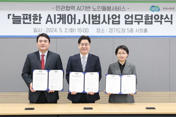경기도는 해당 내용을 담은 ‘늘편한 AI케어’를 시범적으로 추진하기 위해 NHN-와플랫주식회사, 경기도재가노인복지협회와 업무협약을 2일 체결했다.
