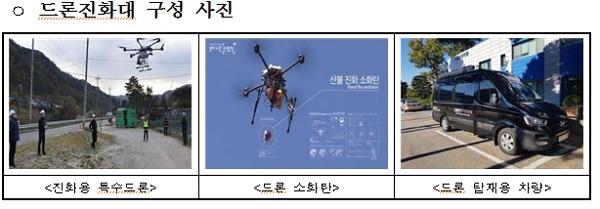 야간 산불이 발생해 진화헬기 기동이 어려울 때 산불진화를 위한 특수드론 30대를 신규 보급하자는 산림청 안이다. 드론 30대 신규 규입, 산불소화탄 6000개, 드론 탑재용 차량 10대 구입 비용으로 46억원의 신규 예산이 편성됐다.