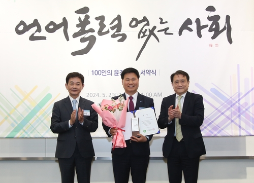 올해 21주년을 맞은 이번 서약식은 '언어폭력 없는 사회'를 주제로 열렸으며 홍보대사 유재석과 김동건 아나운서 등이 함께 참여했다.
