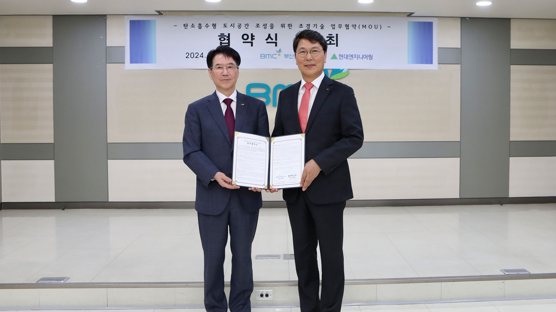 현대엔지니어링이 지난 3일(금) 부산도시공사와 탄소흡수형 도시공간 조성을 위한 조경기술 업무협약(MOU)을 체결했다고 7일(화) 밝혔다.