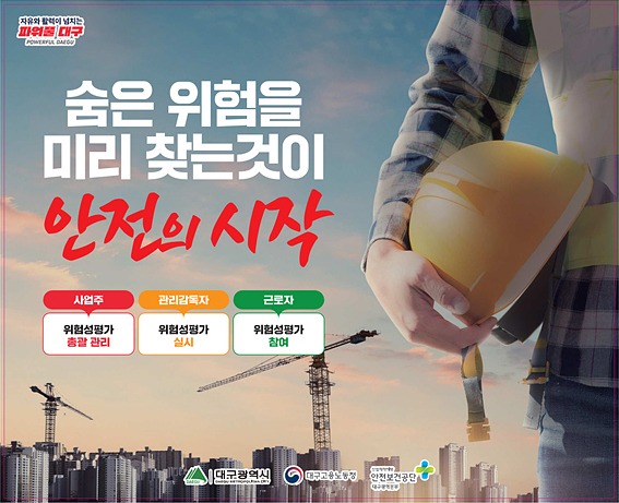 한편, 대구광역시는 ‘근로자는 위험요인 파악, 사업주는 위험요인 해결’을 슬로건으로 5월부터 관내 주요 옥외 전광판과 도시철도, 산업단지를 통과하는 시내버스 등에 중점 홍보하며,