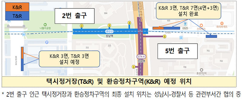 성남역 연계 방안에는 성남역 이용 때 자동차 환승 편의를 향상시키기 위해 상반기 중 성남시에서 성남역 출입구 2번 인근에 택시정거장 3면, 환승정차구역 3면을 설치하는 내용이 담겼다.