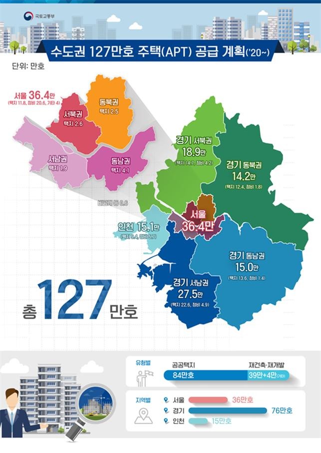 정부가 실수요자 주거 안정을 위해 올해부터 서울·경기·인천 등 수도권에 총 127만 가구의 신규 입주자를 순차적으로 모집한다.