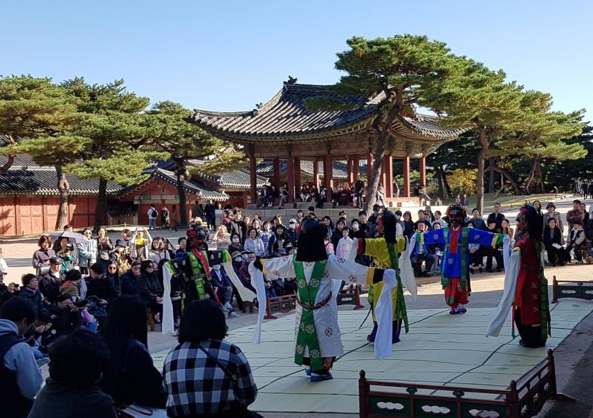 문화재청 궁능유적본부 창경궁관리소는 종로문화재단과 오는 5월 11일부터 25일까지 매주 토요일 오후 3시에 창경궁 경춘전 앞마당에서 「종로구립궁중무용단과 함께하는 창경궁에서의 궁중무용, 무애마당」을 개최한다.