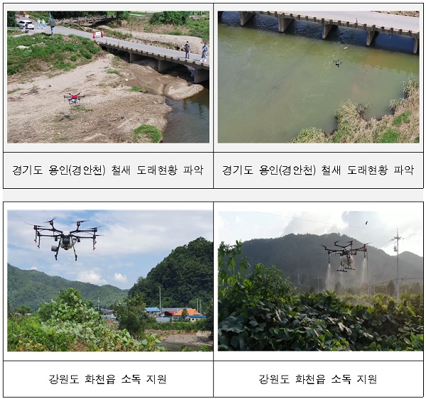 또한 고병원성 조류인플루엔자(AI) 예방을 위해 촬영용 드론 9대(방역본부)를 운영, 야생조류 예찰 등에 활용하고 있다.