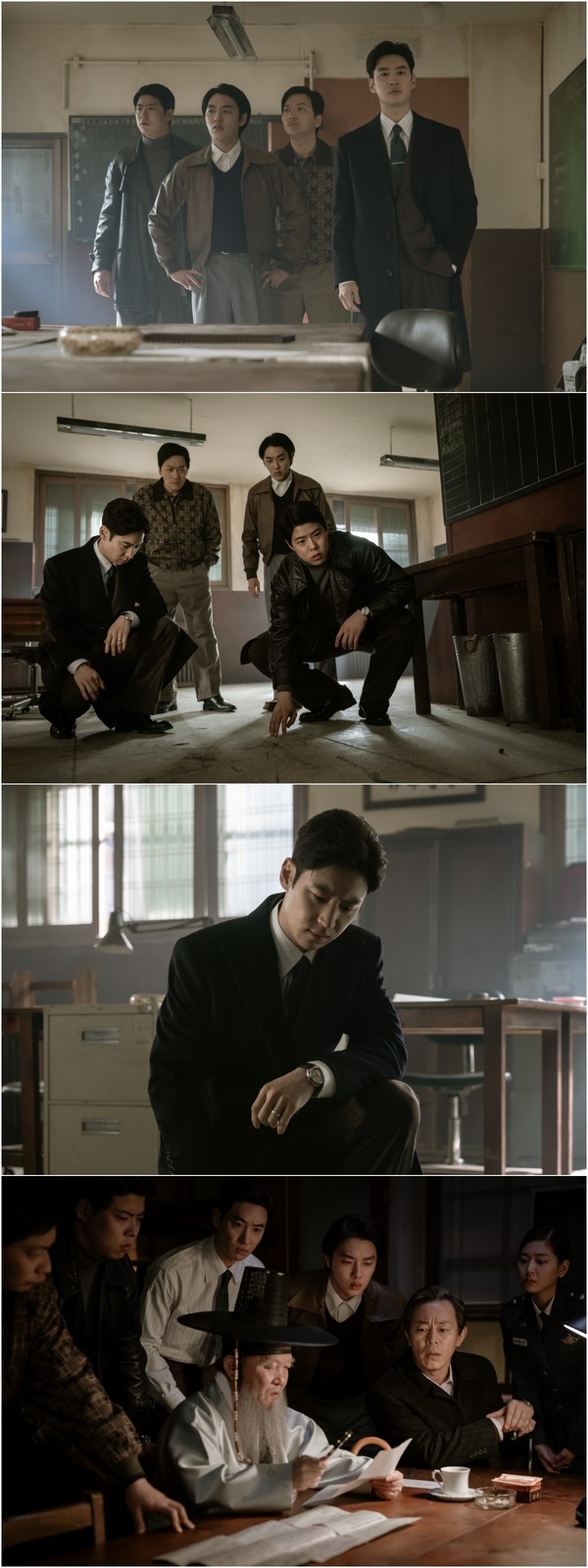 여기에 또 다른 사진에는 형사들 사이, 조선 시대에서 온 듯한 ‘선비(?)’ 비주얼의 남자가 시선을 강탈한다. 도포와 갓부터 길고 흰 수염까지 모든 면면이 그의 정체를 궁금케 한다. 과연 그가 유심히 살펴보는 문서들은 무엇인지, 대낮에 건물에서 추락한 남자의 사연은 무엇일지 이목이 집중된다.