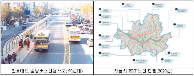 한편, 서울시는 BRT 노선을 지속적으로 확장하여 2020년 현재 종로 BRT를 포함해 13개 도로축, 124.2km에 BRT를 운영중이다. 이제 서울의 BRT는 도시철도와 더불어 대중교통 기간망 역할을 담당하고 있으며 광역교통 수요의 상당부분을 처리하는 수도권 대중교통 체계의 핵심으로 자리매김 했다.