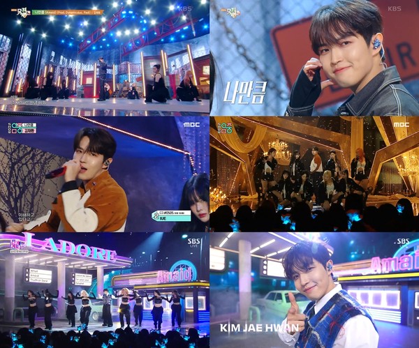 김재환은 지난 10일 KBS2 '뮤직뱅크'를 시작으로 11일 MBC '쇼! 음악중심', 12일 SBS '인기가요'에 출연하며 미니 7집 'I Adore (아이 어도어)'의 타이틀곡 '나만큼 (Amaid)' 무대를 선보였다.