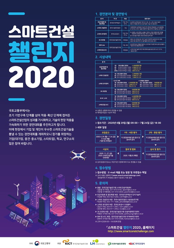한국건설기술연구원(원장 한승헌)과「스마트건설 챌린지 2020」의 일환인 “BIM 라이브” 현장경연을 공동 개최한다.