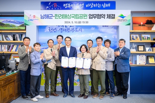 남해군은 지난 10일 군수실에서 한려해상국립공원과 상호 협력적 공원관리를 위한 헙무협약을 체결했다.