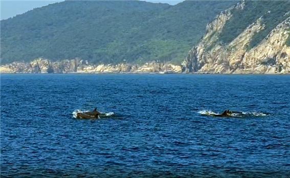 다도해해상 거문도에서 흑범고래 길이 4m 추정 어미개체와 1m 내외 새끼개체 200여 마리 이동 모습 촬영