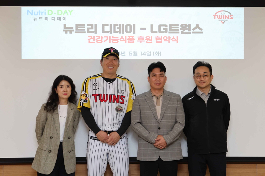 서울 LG트윈스는 5월 14일 키움히어로즈와의 홈 경기에 앞서 건강기능식품 브랜드 뉴트리디데이와 협약식을 진행했다.