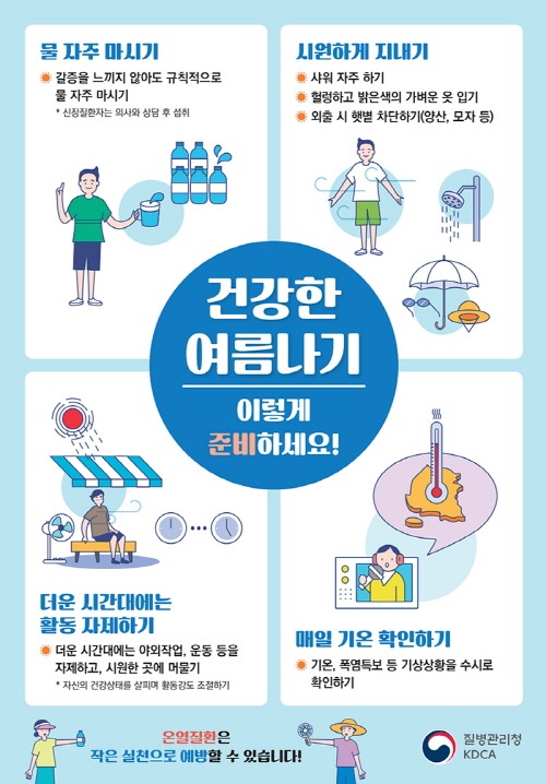 “온열질환은 건강수칙을 잘 지키는 것만으로도 예방이 가능한 만큼 폭염 시 어린이와 노약자, 만성질환자, 야외 작업자는 실외활동을 자제하고 충분히 물을 마시며 주기적으로 휴식하는 등 주의가 필요하다”고 당부했다.