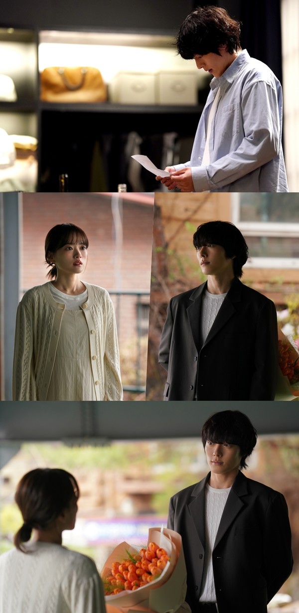 꽃다발을 든 복귀주의 따스한 눈빛과 대비되는 도다해의 혼란스러운 얼굴은 이들에게 찾아온 격변을 예고하며 궁금증을 증폭시킨다.