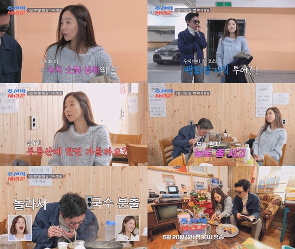 이어지는 장면에서는 추억의 ‘뽑기 놀이’에 도전한 강수지가 고난도 ‘달고나’ 떼기를 맨손으로 척척 해내는 모습이 공개됐다. 어디로 튈지 모르는, 달콤살벌 ‘국수부부’의 ‘수지 데이’ 데이트 현장의 진실은 20일(월) ‘조선의 사랑꾼’에서 만날 수 있다.