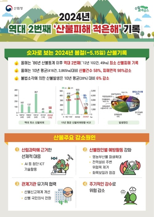 - 역대 2번째 최소 피해, 피해면적 98% 감소, 불법소각 6% 감소 등