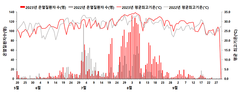 특히 폭염으로 인한 일일 사망자 수는 온열질환 감시가 시작된 이후 7명으로 최다 발생했고, 연도별 사망자 수도 2018년(48명) 이후 두 번째로 많았다.