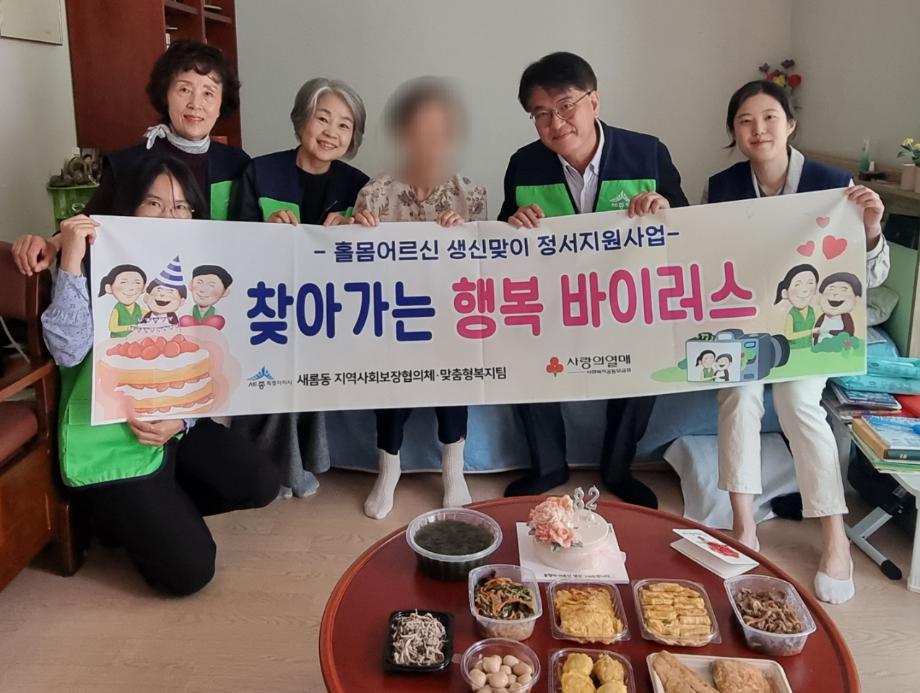 한편 ‘찾아가는 행복 바이러스’ 사업은 독거노인의 고독사를 예방하고 사회적 돌봄을 강화하고자 마련된 사업으로, 새롬동 지사협은 지난해부터 현재까지 매월 저소득 독거 어르신을 선정해 생신 잔치를 열고 있다.