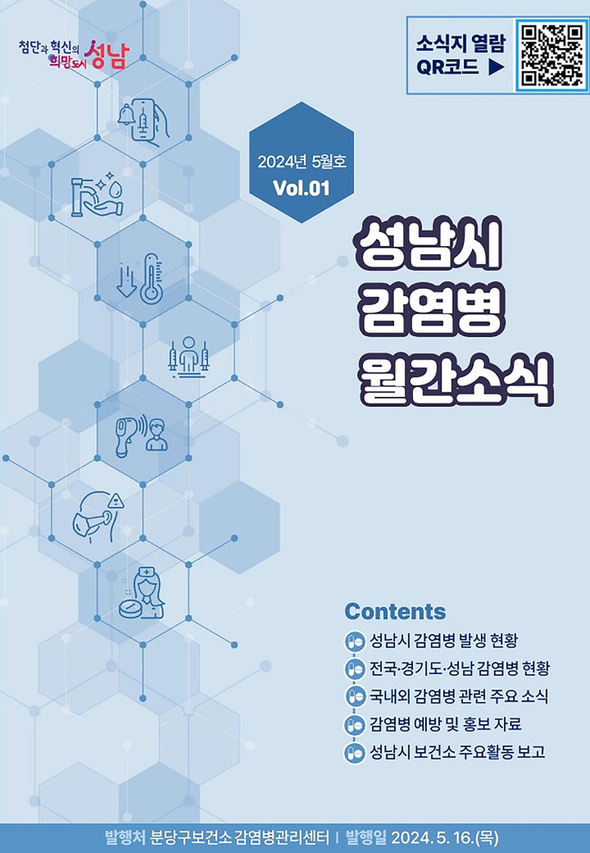 지난 5 월 16 일 창간호 발간 이후에는 매월 10 일 온라인 정기 발간한다 . 관내 의료기관 , 성남시 교육지원청 등 유관기관에 배부하며 성남시보건소 홈페이지 ‘ 감염병소식 ’ 게시판에서 열람하거나 내려받을 수 있다 .