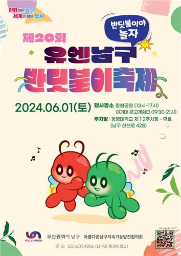 부산 남구청은 오는 6. 1.(토) 평화공원과 이기대 큰고개쉼터에서 제20회 유엔남구반딧불이 축제를 개최한다고 밝혔다.