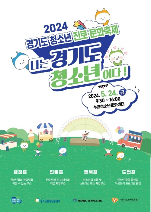 경기도가 24일 오전 9시 30분부터 오후 4시까지 수원청소년문화센터 일대에서 ‘경기도 청소년 진로·문화축제’를 연다.