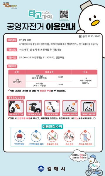김해시가 공영자전거 대여 서비스인 타고가야의 운영을 재개한다. 2020년 12월 전국 최초로 공유 스테이션 체계를 구축한 김해시는 지난해 12월 서비스를 잠정 중단했다. 이후 직영으로 운영되던 타고가야의 수익성을 개선하고자 민간 공유자전거 플랫폼 서비스를 도입해 새롭게 운영을 재개했다는 것이 김해시의 설명이다.