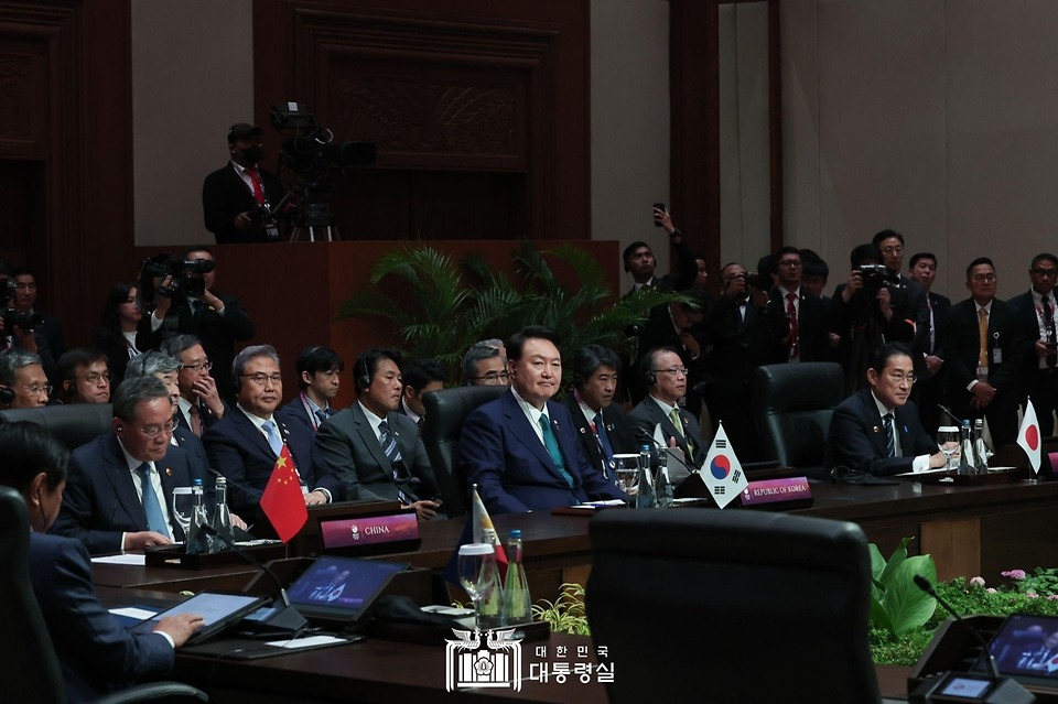 윤 대통령은 지난해 9월 아세안 정상회의 계기에 리창 총리를, 그리고 G20 정상회의 계기에 기시다 총리를 각각 만나 한일중 정상회의 개최를 직접 제안했었다. 이후 우리 정부는 의장국으로서 정상회의 개최 성사를 위한 3국 간 협의를 주도해 왔다.