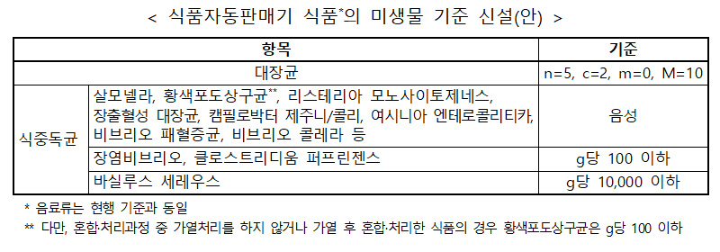 식약처, 자판기 조리식품 미생물 기준 내용 담은 고시 개정안 입법 예고