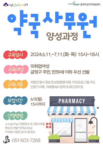부산시 금정구는 동래여성인력개발센터와 협력해 경력 단절 및 미취업 여성의 취업률 증가를 위한 '약국 사무원 양성 사업' 지원자를 모집한다.