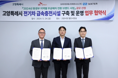 고양특례시는 지난 24일 SK일렉링크(주), 브라이트에너지파트너스(주)와'고양특례시 전기자동차 충전시설 구축 및 운영' 협약을 체결했다고 밝혔다.