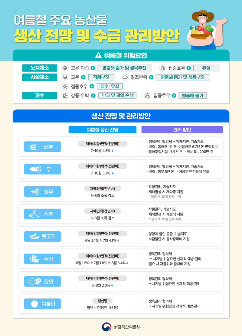 이에 농식품부는 여름철 기상재해에 취약한 농산물의 수급 안정을 위한 대비에 나서기로 했다.