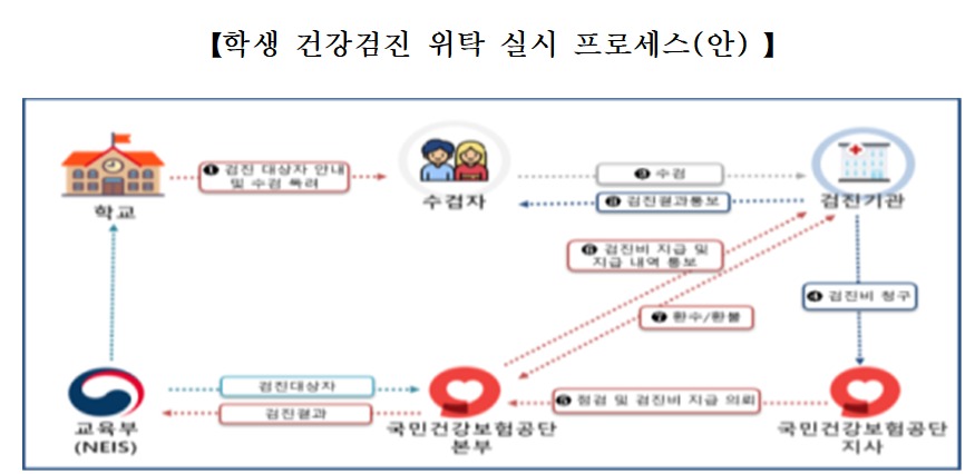한편, 교육부와 복지부는 올해 하반기 중 세종 및 강원 원주 관내 학교(196교, 3만 5000명)를 대상으로 학생건강검진 개선 방안을 시범 운영할 방침이다. 시범사업 결과를 토대로 모든 학교로의 전면 확대 시기를 검토하기로 했다.