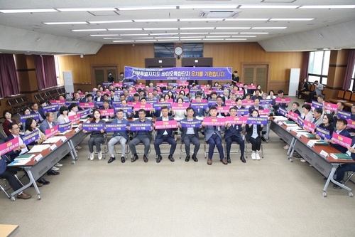 시는 27일 시청 대회의실에서 이학수 시장과 실과소장 및 읍면동장, 직원 등 100여명이 참여한 확대간부회의를 열고 이 자리에서 바이오특화단지 유치 여정에 힘을 싣기 위해 전 시민의 뜻을 모아 결의를 다지는 시간을 가졌다.