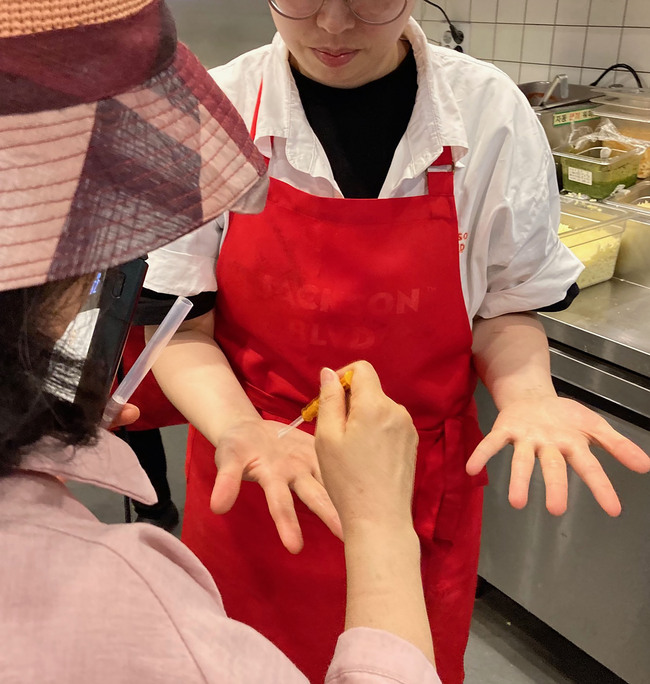 각 업소 종사자의 손을 비롯한 칼 , 도마 등의 오염도 시약 검사도 이뤄진다 .