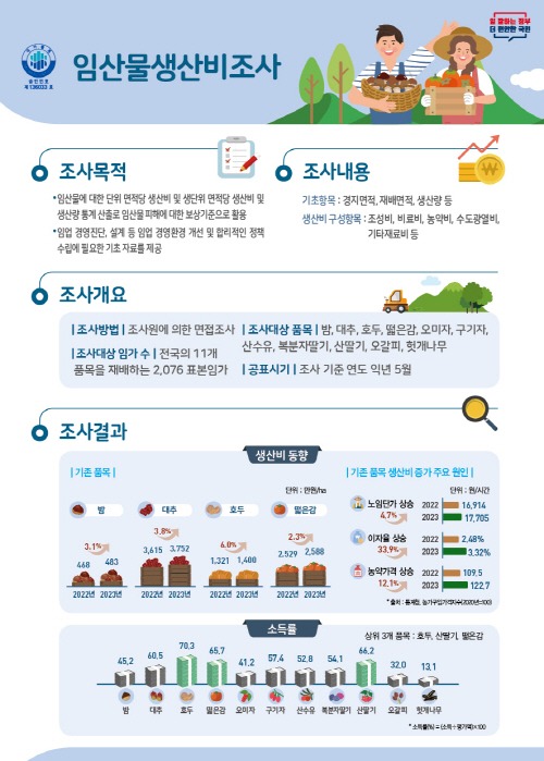 - 밤, 대추 등 주요 임산물 11개 품목 생산비 조사결과 발표