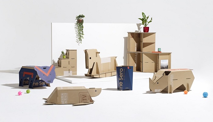 삼성전자는 지난 4월부터 ‘더 프레임(The Frame)’,‘더 세리프(The Serif)’,‘더 세로(The Sero)’등 라이프스타일 TV 포장재에 업사이클링 개념을 도입했다. 골판지로 구성된 포장 박스의 각 면에 도트(Dot) 디자인을 적용해 소비자가 원하는 모양으로 잘라내 반려동물용 물품, 소형 가구 등 다양한 형태의 물건을 제작할 수 있도록 한 것이다.