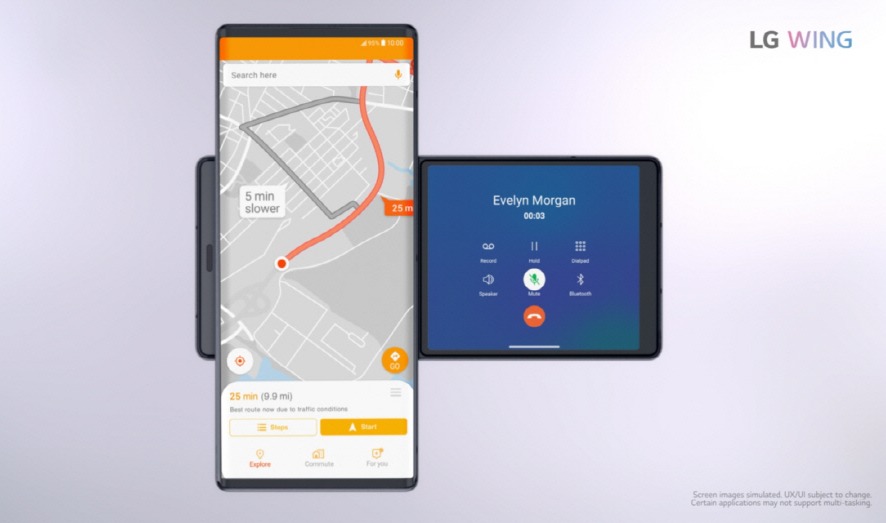'LG 윙'은 사용자들에게 익숙한 바(Bar) 타입 스마트폰의 편의성에, '스위블 모드(Swivel Mode)'로 기존과 완전히 다른 새로운 사용자 경험을 더한 제품이다. 고객은 평상시에는 일반 스마트폰처럼 사용하다가 필요 시, 메인 스크린을 시계방향으로 돌려 숨어 있던 세컨드 스크린과 함께 사용할 수 있다.