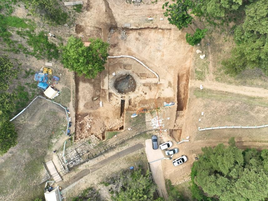 조사 결과, 직경이 각각 동서 9.5m, 남북 7.8m, 최대 깊이는 4.5m에 이르는 평면 원형 형태의 다듬은 거대한 석재 집수시설을 확인했다.