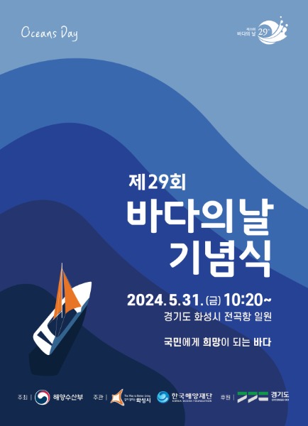 - 제29회 바다의 날 기념식, 5월 31일 경기도 화성시 전곡항에서 개최