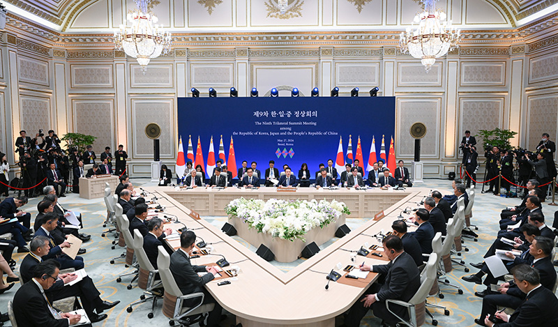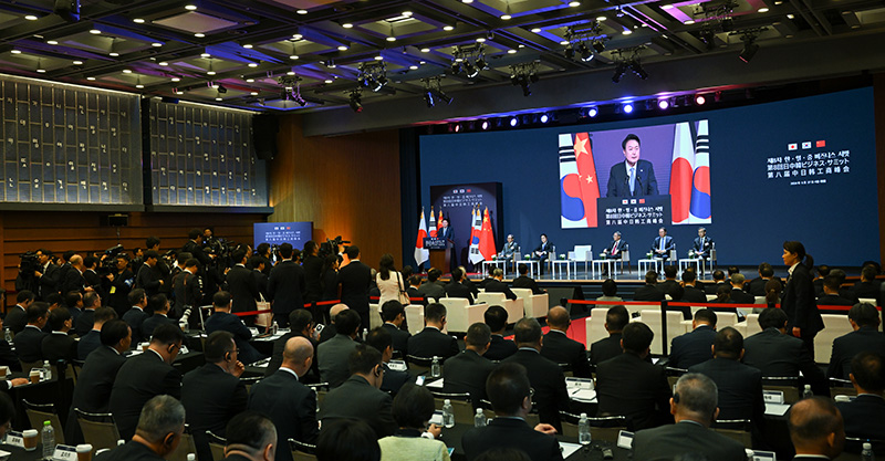 27일 공개된 ‘제9차 한일중 3국 정상회의 공동선언’에서 ‘협력’이라는 단어는 총 63번 등장한다. 이번 정상회의가 성사된 근본적 이유다. 그간 양자관계 및 동북아 지역의 안정과 번영에 기여해온 데 이어 3국은 인적교류, 경제통상, 과학기술, 디지털 전환 등 6대 분야를 중심으로 미래지향적 협력을 확대해 나가기로 했다.