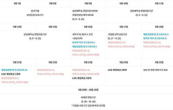 한편 이번 박람회에서는 코로나19로 어려움을 겪고 있는 취준생들을 위해 채용효과를 높일 수 있는 프로그램을 집중 제공하는데, 채용상담부터 면접까지 채용과정 전반에 걸쳐 비대면 플랫폼을 적용한다.