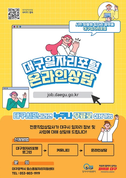 대구광역시는 시민들의 일자리 고민을 해결하기 위해 ‘대구일자리포털 온라인 상담’ 서비스를 본격 운영한다.