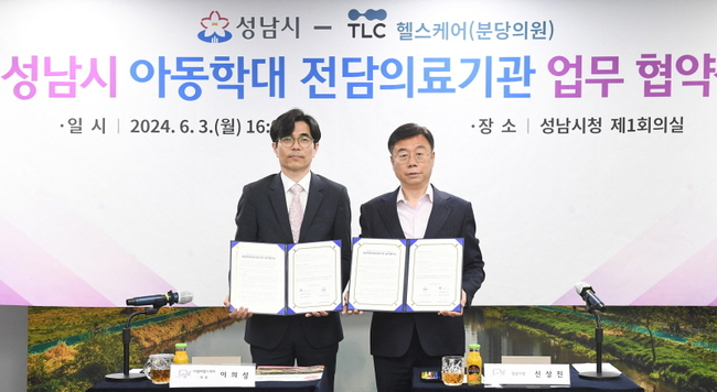 이를 위해 시는 이날 오후 4 시 시청 4 층 제 1 회의실에서 신상진 성남시장과 이의성 티엘씨헬스케어 대표 , 현혜연 티엘씨분당의원장 등이 참석한 가운데 ‘ 아동학대 전담의료기관 지정에 관한 업무협약 ’ 을 했다 .