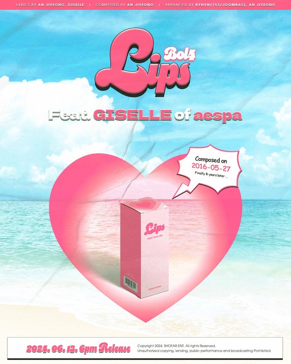지난 3일 쇼파르엔터테인먼트는 공식 SNS를 통해 볼빨간사춘기 신곡 ‘립스(Lips)’의 티저 영상을 공개하며 베일에 싸여있던 ‘립스(Lips)’의 피처링 아티스트가 ‘에스파(aespa)’ 멤버 지젤임을 밝혔다.