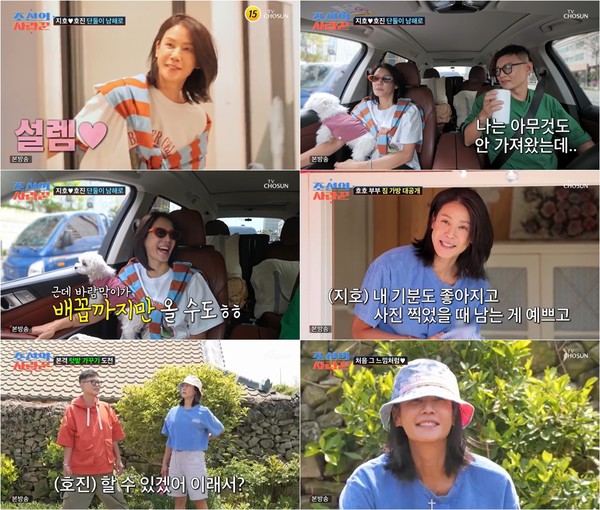 김지호는 3일(어제) 방송된 TV조선 ‘조선의 사랑꾼’에서 남편 김호진, 반려견 별이와 함께 남해로 떠났다.