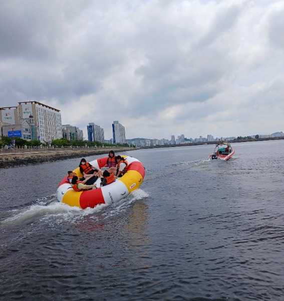참여 학생들은 평화광장 앞 해상에서 땅콩보트, 제트보트, 디스코팡팡 등 해상레포츠를 즐기며 “모든 스트레스가 확 날아가는 것 같다며, 너무 신나고 즐거운 시간이었다”고 환호했다.