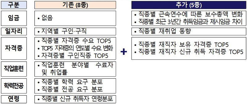 특히 6월부터 그동안 워크넷 구인·구직 정보를 중심으로 제공하던 노동시장 정보를 고용보험 정보까지 8종에서 13종으로 확대해 구직자들이 직업을 선택하는 과정에서 궁금해하는 정보를 쉽게 파악할 수 있을 것으로 기대된다.