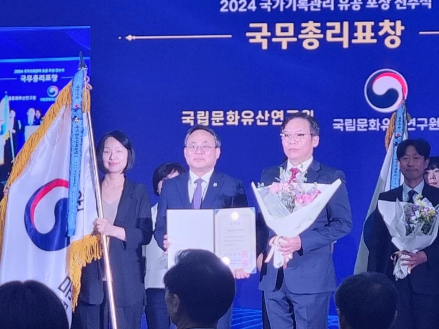 국가유산청 국립문화유산연구원(이하 ‘연구원’)은 행정안전부 국가기록원 주관 2023년 기록관리 기관평가에서 우수기관으로 선정되어, 지난 4일 ‘2024년 기록의 날’ 기념식이 열린 정부세종컨벤션센터에서 국무총리 표창을 수상했다.
