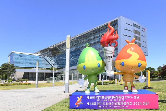 성남시가 2024 경기도 생활체육대축전 홍보 조형물을 제작해 성남시청 광장과 성남종합운동장 정문 뒤편 등 2 곳에 설치했다 .